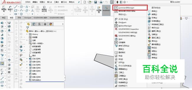 当我们设置侧边工具栏的时候,鼠标右键不会出现command manager中的评估中的功能(如测量,质量属性),但往往日常操作中很容易用到。