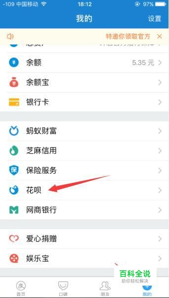打开支付宝APP,点击“我的”,然后打开“花呗”。