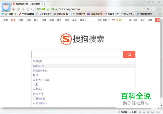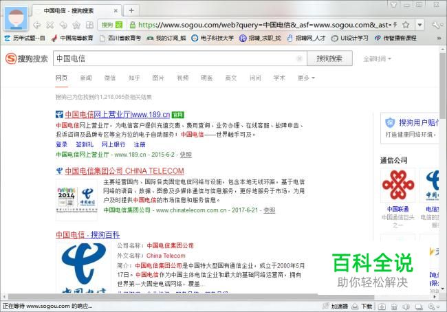 进入搜狗浏览器,输入“中国电信”