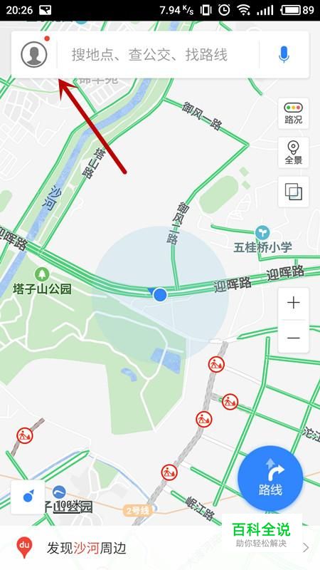 进入百度地图APP界面,选择“个人头像”