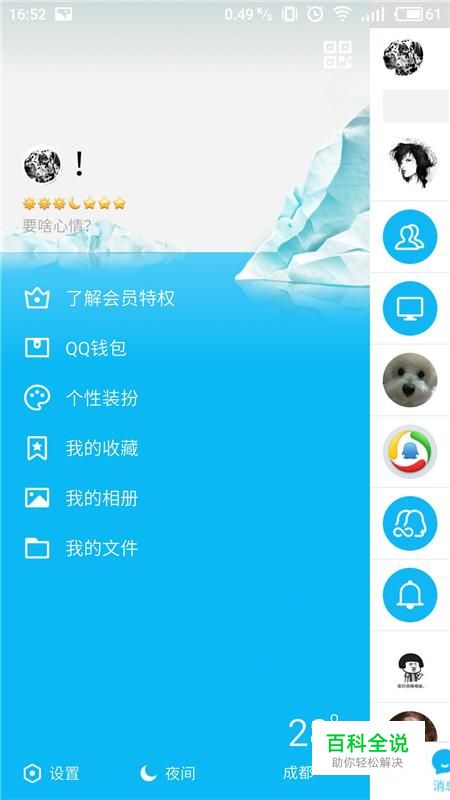 进入手机QQ主界面,选择左上角“个人头像”