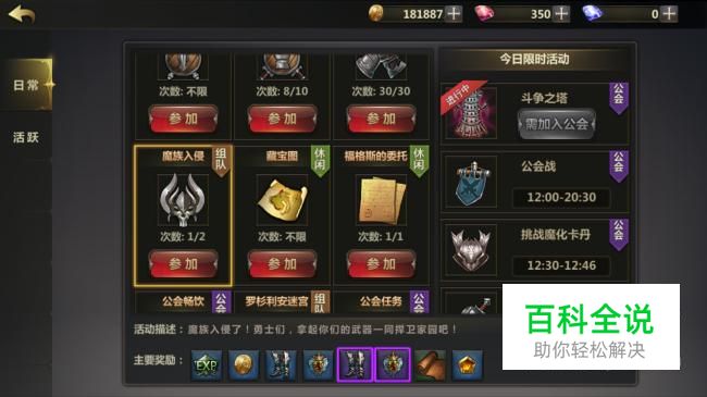 魔族入侵是洛奇英雄传手游中一个日常活动,进入活动界面后会和队友一起抵抗几波的怪物,在成功抵御之后即可获得相应的奖励,下面介绍一下魔族入侵活动的玩法。