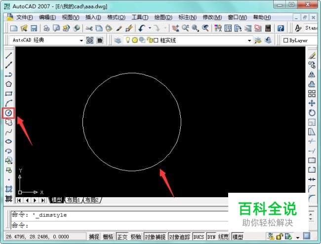 当我们觉得里面的圆心标记的十字符号有点过大的时候,可以调节其大小。首先,点击上方“标注选项”在其子菜单中找到“标注样式”选项,如图所示: