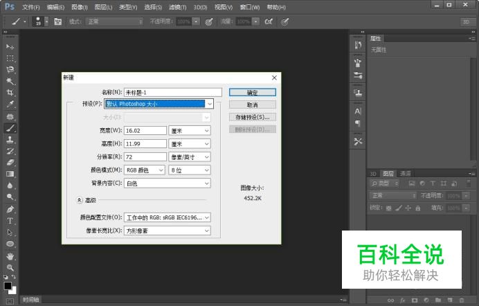 新建一个画布,画布的参数使用默认设置。
