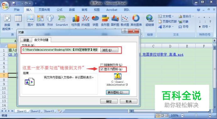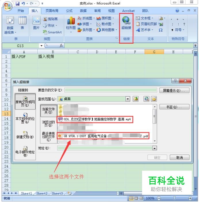 然后在电脑上找到两个文件用来链接到Excel文件,一个PDF和一个视频文件。