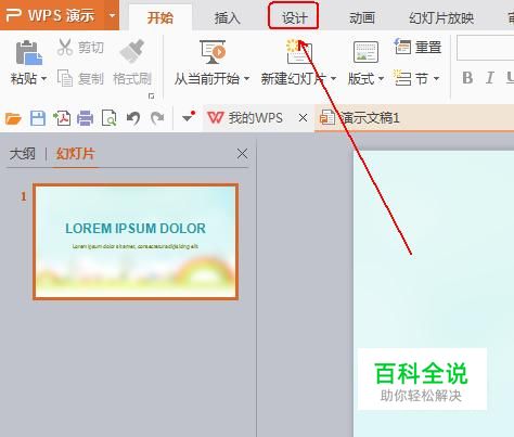 在wps 演示的工具栏上单击“设计”选项。