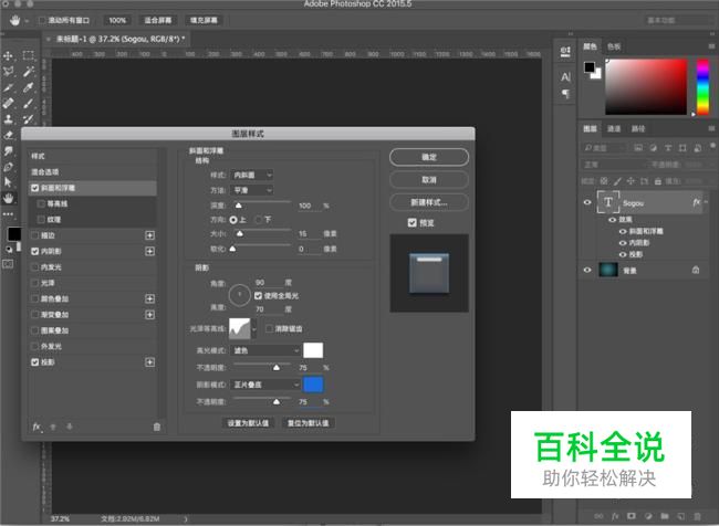 添加一个内斜面样式,平滑方法的斜面浮雕。