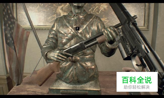 重新返回主厅的展览室,将猎枪取下后,将坏掉的猎枪放上去。