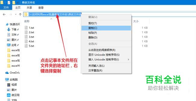 点击记事本文件所在文件夹的地址栏,右键选择复制