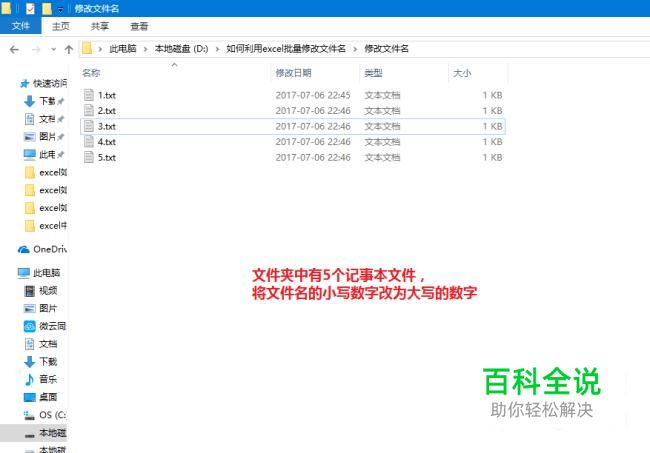 文件夹中有5个记事本文件,现在要将文件名的小写数字改为大写的数字