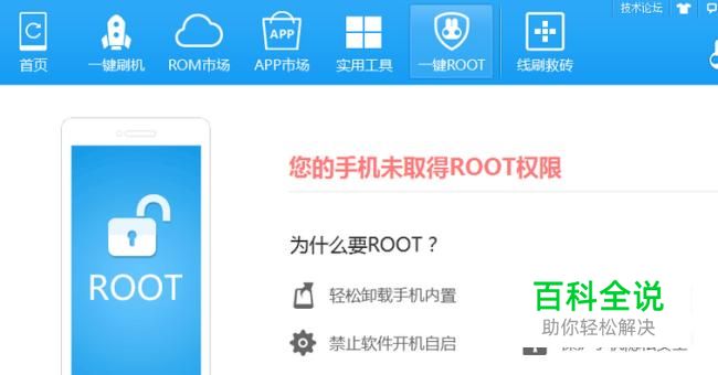 手机与电脑连接成功之后,点击菜单中的“一键root”,等待数分钟即可获得root权限。