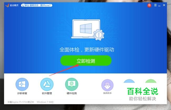 出现这个问题,一般都是驱动在作祟。我们可以先下载“驱动精灵”。如图所示: