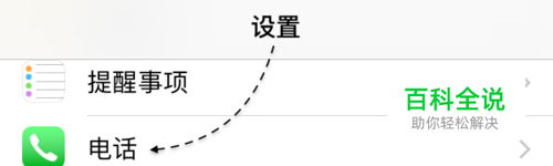 在设置列表中,请找到并点击「电话」一栏,如图所示