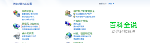 在控制面板页面,“类别”方式找到“查看网络任何和状态”。如图所示。