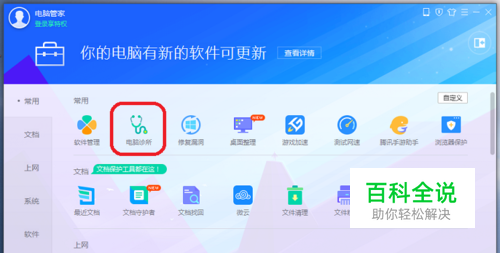 首先打开电脑管家 在“工具箱”中找到“电脑诊所”
