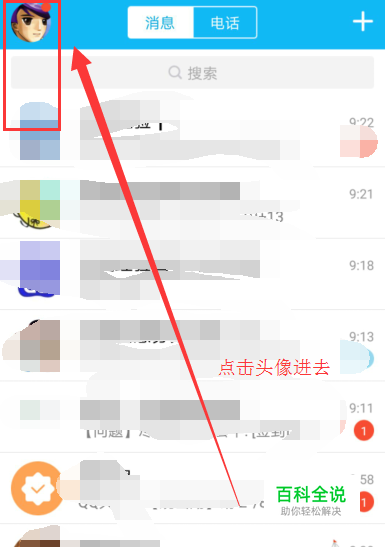 打开手机QQ,如下界面所示,点击左上角的头像进去