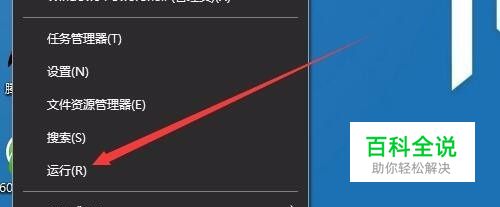 在Windows10桌面右键点击左下角的开始按钮,在弹出菜单中选择“运行”菜单项。