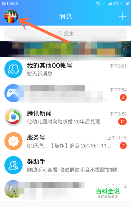 在手机QQ消息页面左上角,点击QQ头像,进入自己的QQ页面。左下角有“设置”,点击。