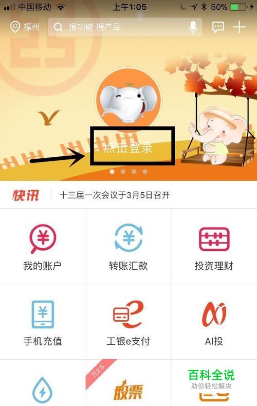 首先,我们还是打开工商银行的手机APP,点击进入首页,再点击“点击登录”;