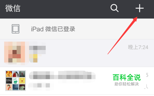 首先,我们打开微信首页,然后点击页面右上角如图所示的三点
