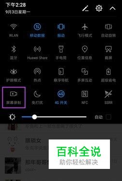 第二种方式是利用手机自带的录屏功能。 这里以我自己用的华为手机为例。 首先将手机顶端的隐藏菜单向下滑出,找到“屏幕录制”按钮。点击该按钮即可开始录制。 (注:该录制按钮会因手机品牌和系统的不同而不同。若有找不到该功能的小伙伴,可以在网络上搜索一下自己手机的录制按键在哪里设置,这里就不一一说明了)