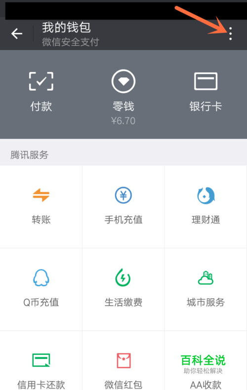点开“我的钱包”,右上角那里有三个点的位置,是一些隐藏的功能。