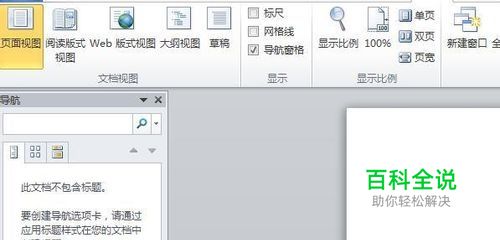 显示导航窗格 打开word文档,单击视图标签 在显示选项组中勾选导航窗格复选框