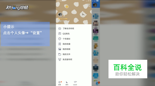然后点击左上角的个人头像,再点击左下角的“设置”选项。