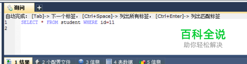 查询ID为11的信息 SELECT * FROM student WHERE id=11