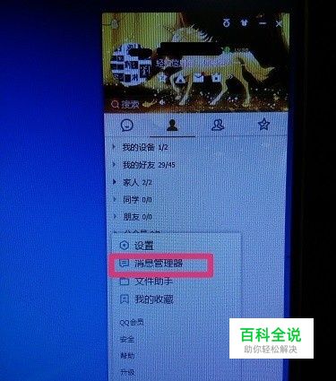 打开QQ主界面,点击左下角“主菜单”;打开“消息管理器”