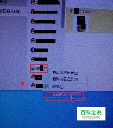 找到以前误删的好友后,右击一下,弹出一个对话框。选择“查看联系人资料”