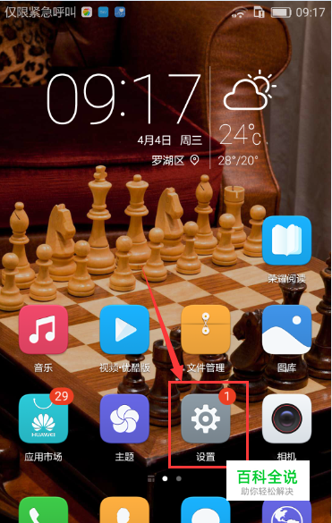 小编这里使用的是华为荣耀手机做测试。首先我们来看下桌面。在桌面上可以看到“设置”,我们点击进入