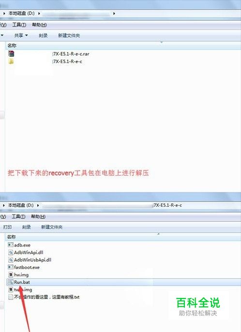 把下面下载下来的第三方recovery在电脑上进行解压,解压出来一个文件夹,然后在文件夹里找到【Run.bat】文件直接双击运行。