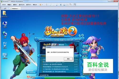 打开偶们的各自的游戏! 大部分小伙伴会出现下面这里提示 "抱歉,梦幻西游2无法支持您的系统环境。" 甚至有些提示是英文的:"无法再虚拟机中运行!" 以及可能是 直接打开不游戏等等! 出现这类 .我们还需要怎样才能利用虚拟机 达到游戏多开呢!请继续观看下面! PS 如果你的游戏对虚拟机没有限制那么恭喜你,下面内容你可以直接跳过,当然如果你想知道如何无限多开虚拟(主机配置hold得住!),请参考爪子的另一篇文章: "VMware&Vbox 复制克隆多个虚拟机系统"