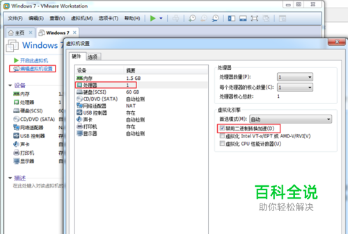 方法四 :是配合其他三种方法使用的不需要删除其他代码! ! !分两步 ① 添加一条代码: 同样添加至 ".vmx配置文件" 末尾! ! ! -------------------------------------------------------- monitor_control.restrict_backdoor = "true" -------------------------------------------------------- ② 打开需要玩游戏的虚拟机 点击 "编辑虚拟机设置" --> 点击 "处理器" --> "虚拟化引擎" 勾上"√ 禁止二进制转化(D)" --> 点击 "确定" 即可! PS 通过上述 四种方法!如果还是不能打开游戏,只能说明这个游戏的检测力度太强了! ! ! 下篇 讲诉,如果修改虚拟机系统<驱动> 达到"去虚拟化"目的 可以使个别游戏无法检测 "虚拟机环境运行!"