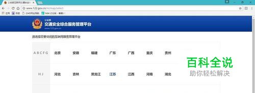 首先打开电脑或手机地浏览器,进入公安部交通安全综合服务管理平台网址:http://www.122.gov.cn/m/map/select