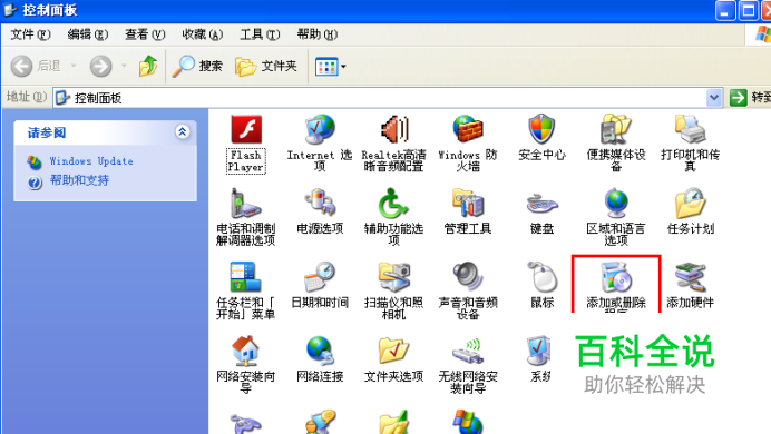 进入“控制面板”,选择“添加或删除程序”,如下图: