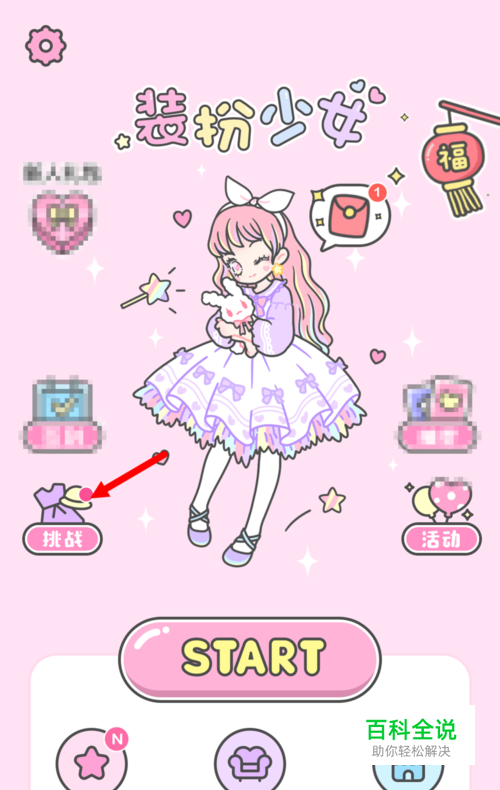 打开手机上的装扮少女,并进入到个人的主页中,并点击界面上的【挑战】按钮。