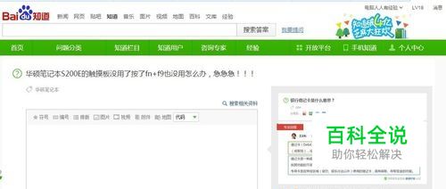 网友求助:华硕笔记本 S200E的触摸板没用了按了fn+f9也没用怎么办?