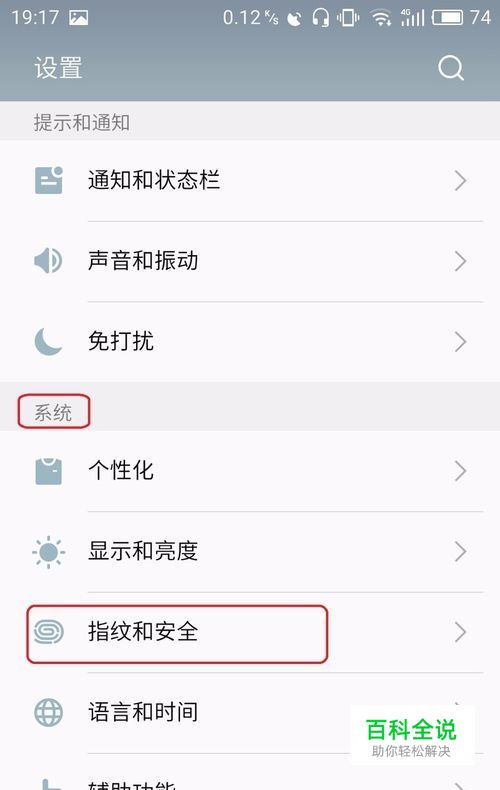 打开手机主页,进入“设置”页面,选择“指纹和安全”选项;