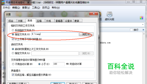 将临时文件由系统设置改成自定义。可以在硬盘上设置一个文件夹。这里设置成D:\temp。然保存设置,这时就可以正常解压文件了。