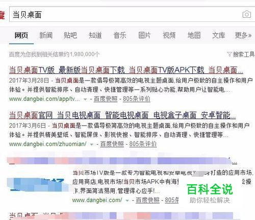 首先,我们把智能电视连上自己家的无线网络,然后我们在应用市场里瞎子当贝桌面,如果没有,则在电脑上下载下桌面,放在U盘里,然后安装在智能电视上,如下图所示:
