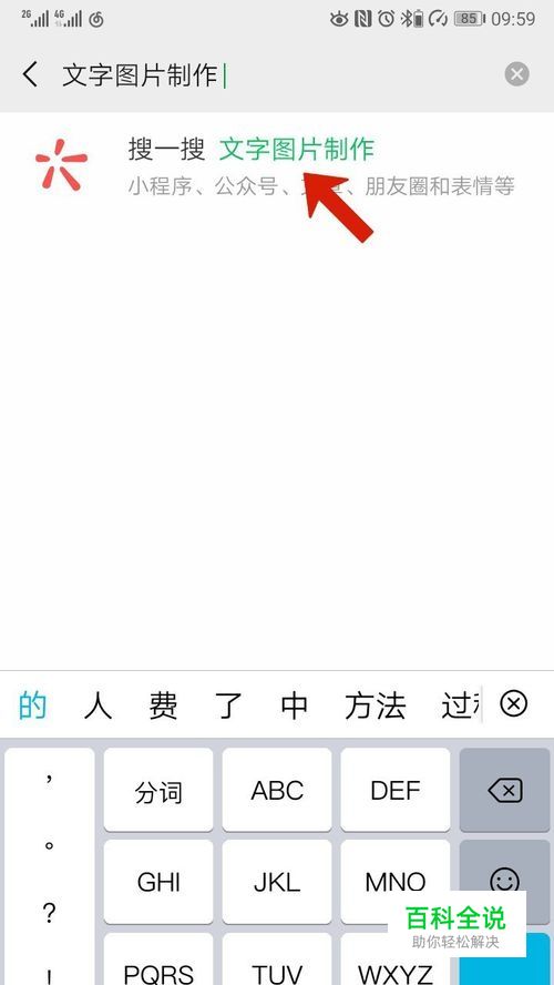 在微信顶部搜索:文字图片制作,点击文字图片制作小程序,进入小程序。