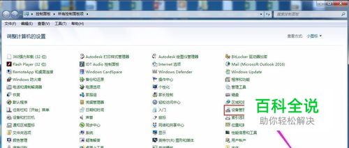 在控制面板主界面找到“设备管理器”。如果未找到该字样则需要在右上角的查看方式中选择“小图标”。