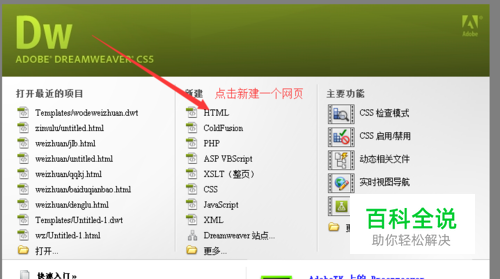 初学者我们可以通过DWcs5软件上模拟建立一个网站,首先我们打开软件,新建一个网页。
