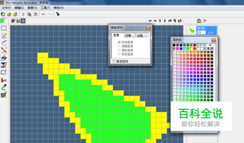 接下来从“工具箱”面板中合适合适的工具,来制作自己的个性化光标图标,通常利用“铅笔”工具来绘制光标图标,左上角的两个标签用于设置前景色和背景色。