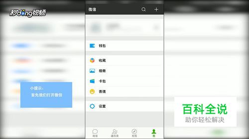 首先打开微信,点击菜单栏中的“我”,点击“设置”。