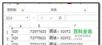 在B1单元格输入公式: =CONCATENATE("固话:",A1,B1) 在这里要注意的,文字要用英文状态下输入 的双引号。