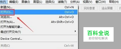 启动photoshop软件后,点击photoshop导航上面的文件,然后选择下拉菜单里的打开,如下图所示