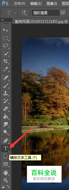 首先,我们在Photoshop中打开需要处理的图片,然后点击左边的文字工具